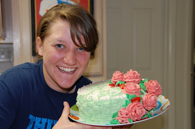 So, yesterday was basically the best day ever! My 7 hour class was canceled because my teacher wasn't going to be there. So, I had all the time in the world!! I still had to go to 5 hours of classes, but 4 hours of that is awesome lab, so that was fun! So, with my extra time . . . I cut someone's hair. ( I am quite the hair cutter now, I have cut 5 peoples hair within the past 3 weeks. And I must say . . . they look fabulous!) I helped my room mate compile and frost a cake. (More details to come) Cleaned my room. Cooked some awesome lunch, Did some homework, rode Magness! And competed and won against my room mate in Mario Kart! 7 times!! So, I went to lacrosse practice, had such a good time! My team rocks! We have our first game tonight! (i will let you know how it goes) Then, afterwards I stayed and helped 2 girls with their stick skills that had just started learning how to play, they improved immensely by the end of our little session. Then, my awesome room mates, came and got me from practice which was way nice, and I learned they hadn't eaten dinner yet, And I was way confused! So, then they asked me to tell them about my day, so I did. Then, I walked in to my apartment to find it covered in streamers and my room mate holding up a camera, and then they placed an awesome cone hat on me! There were presents in the middle of the floor! And dinner laid out on the counter/table It was so exciting!!!! I couldn't believe it! They got me good! Later I had learned that they have ben planning to surprise me for over a week! They did good at keeping it in! I felt so stinkin loved! We ate our amazing dinner . . . Chicken, mashed potatoes, green beans, rolls, gravy, and lemonade in my new crazy glass! It was so perfect! And such a surprise! And a kid that I had cut his hair a couple of days ago said he owed me, and when I got home there was a note written on my white board saying look in the freezer, and low-and-behold, He had gotten me my favorite flavor of Jambe Juice!!! It was seriously awesome! Oh, then the cake! All sarah and I did earlier was frost the cake, then they turned it over to me, and let me decorate it! So, I drew each of us on the side of the cake with a 'sweet' little thank you on top! It was so fun! And it is basically gone already! Seriously though . . . best day ever! Whoo that was long! Thanks for sticking to the end! I can't wait to go home this weekend and I must prepare for the best weekend of my life! Seeing my family on my birthday!!!!!! Much Love!